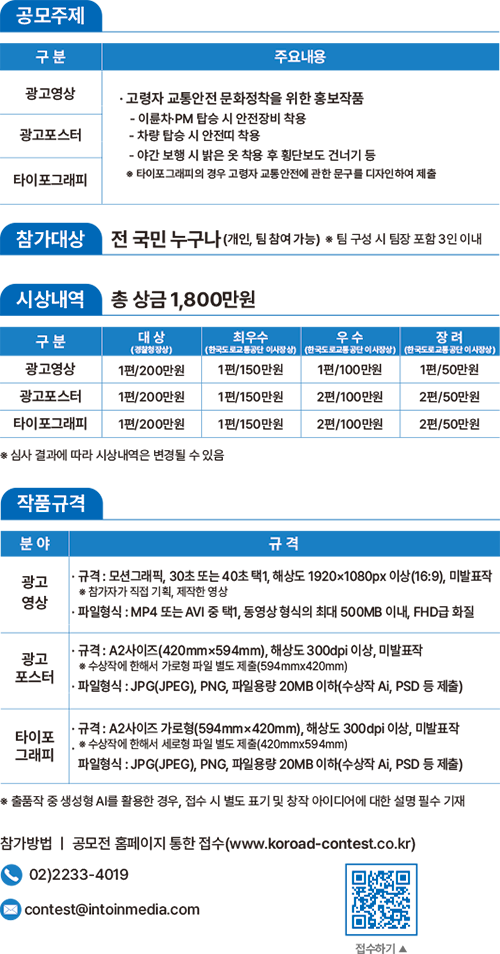 2025년 제43회 교통안전 홍보작품 공모전 운영사무국 ㈜인투인미디어 / 문의전화 : 02-2233-4019